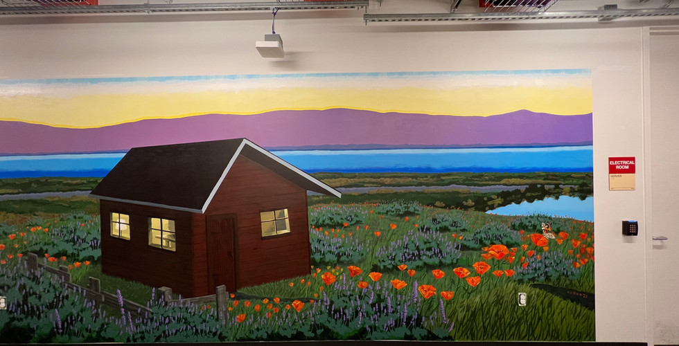 As an Artist in Residence with Meta Open Arts, I designed and installed two permanent murals at the Fremont campus. Each mural measures 10 feet by 30 feet and was designed and led from concept and supported by a team for installation. These works were designed for daily viewing in a high traffic office environment and finished with long term durability in mind.